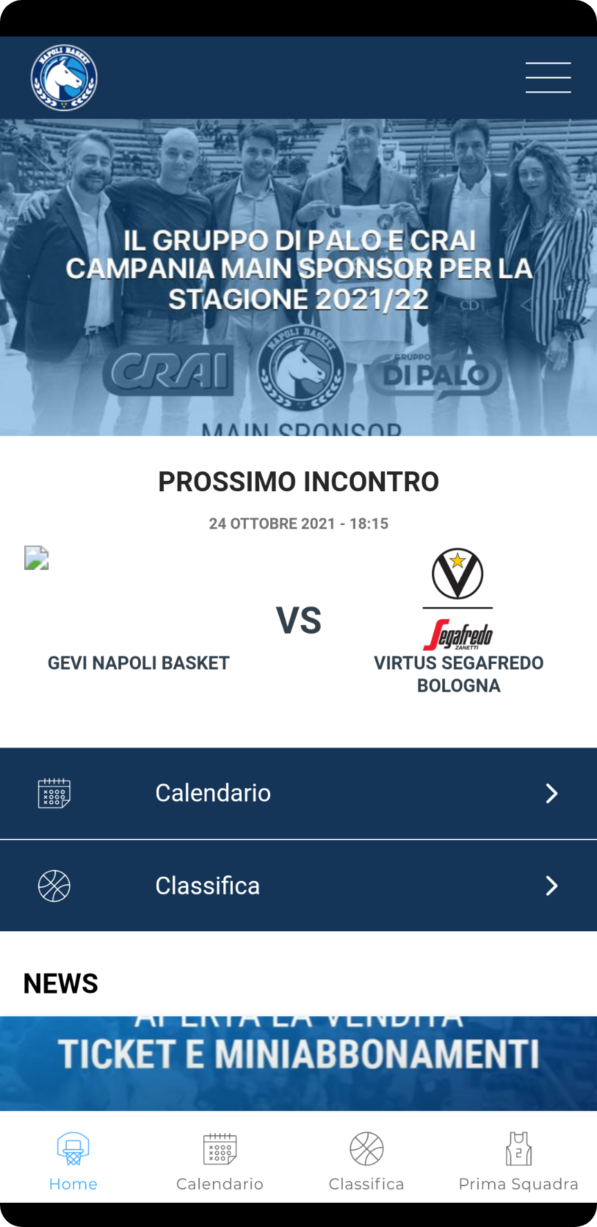 Segui la tua squadra del cuore quando e dove vuoi, scarica la nuova app della società sportiva Napoli Basket e vai a canestro con i tuoi campioni. Con un semplice login avrai accesso a tutti gli aggiornamenti sul campionato e le coppe disputate dalla squadra: