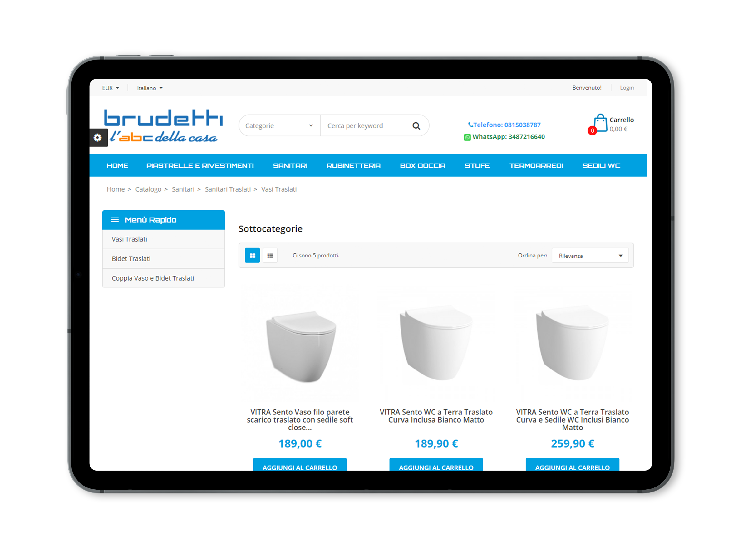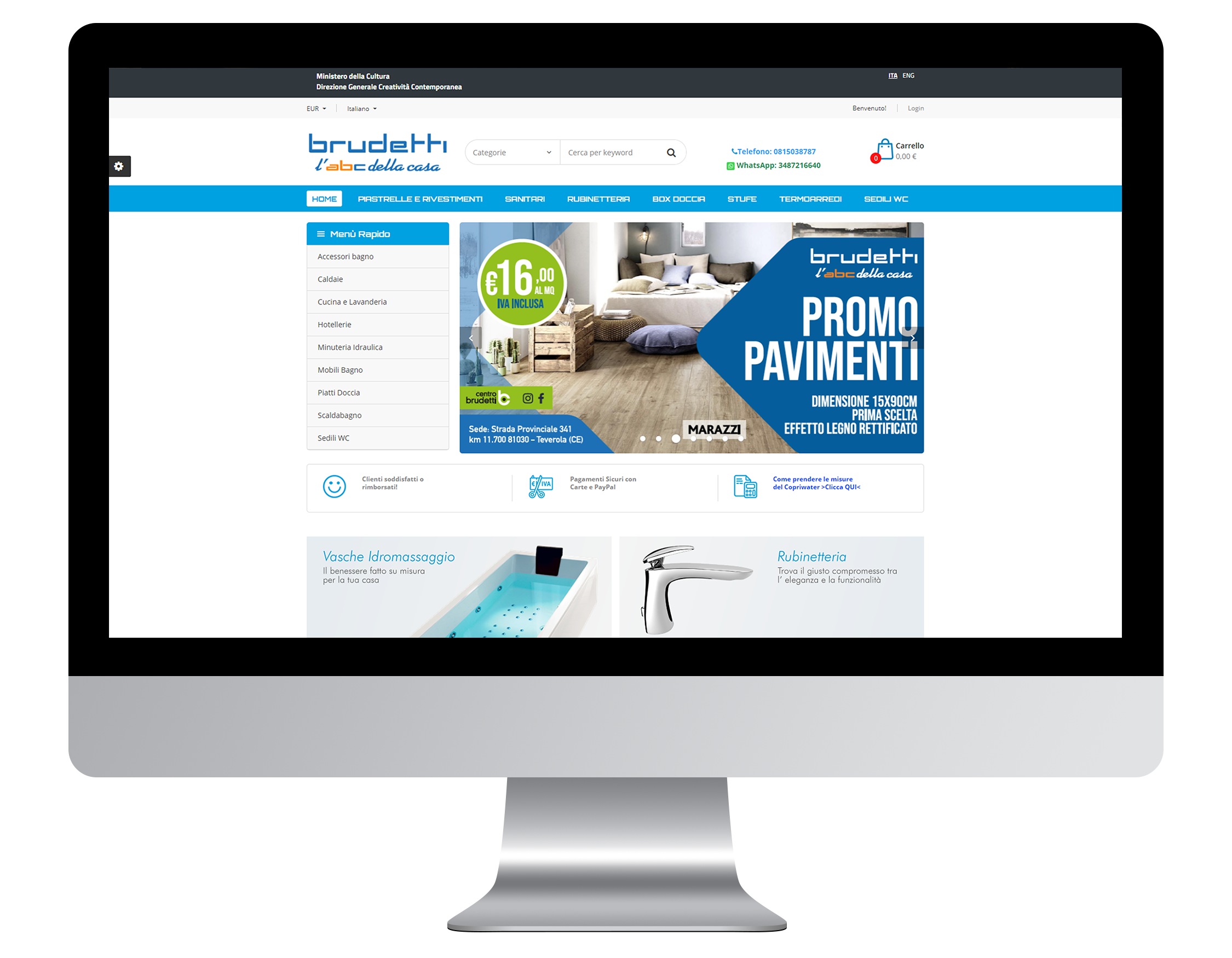 Brudetti Arredo Bagno è una ditta specializzata nel settore termoidraulico che ha sede ad Aversa. Collabora con le maggiori case produttrici di ceramiche, rivestimenti, riscaldamento, condizionamento e arredo bagno. L'azienda mette a disposizione dei suoi clienti 5.000 mq di esposizione con tutti gli articoli esposti, al fine di trovare la soluzione migliore a prezzi competitivi.