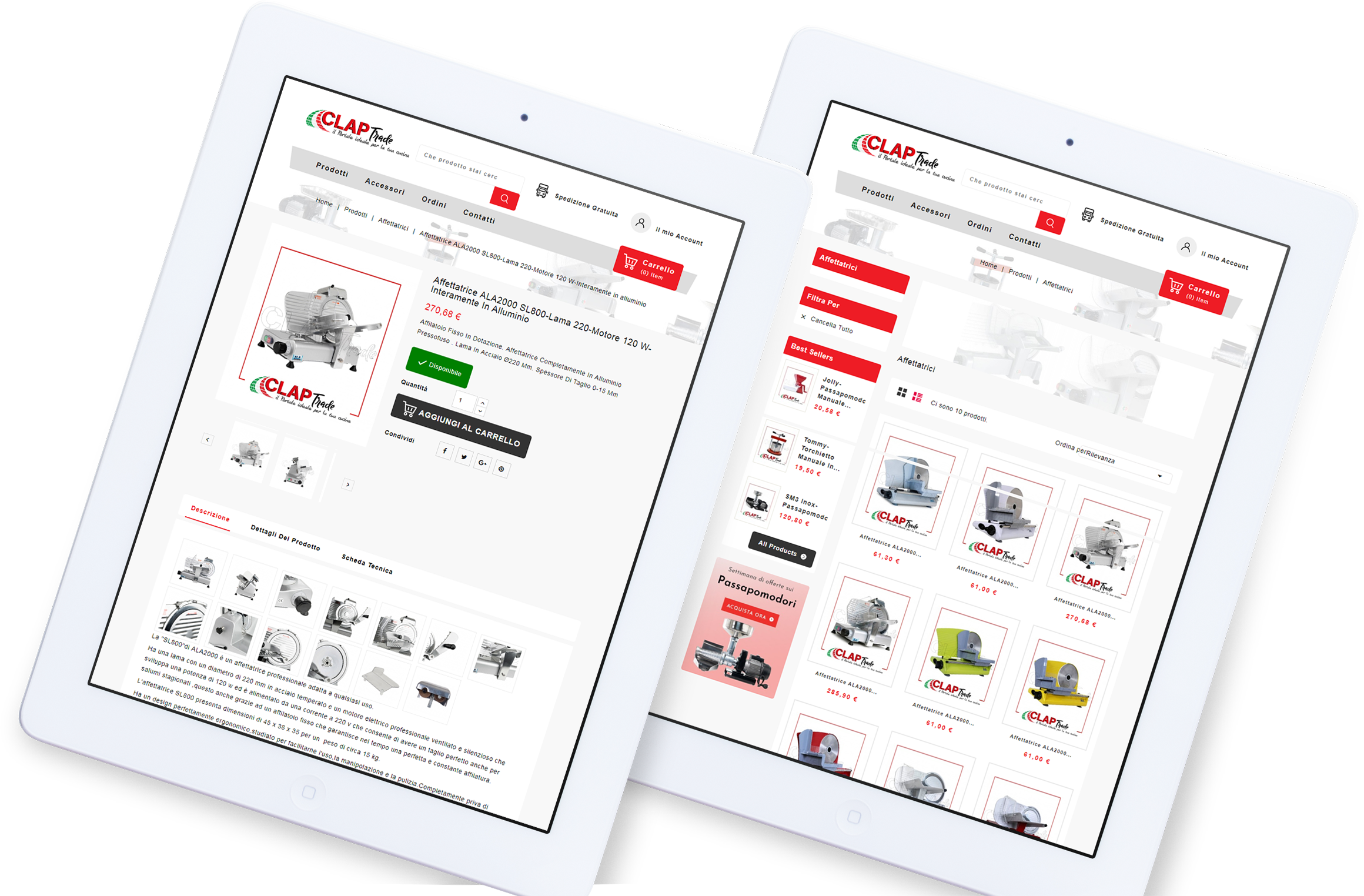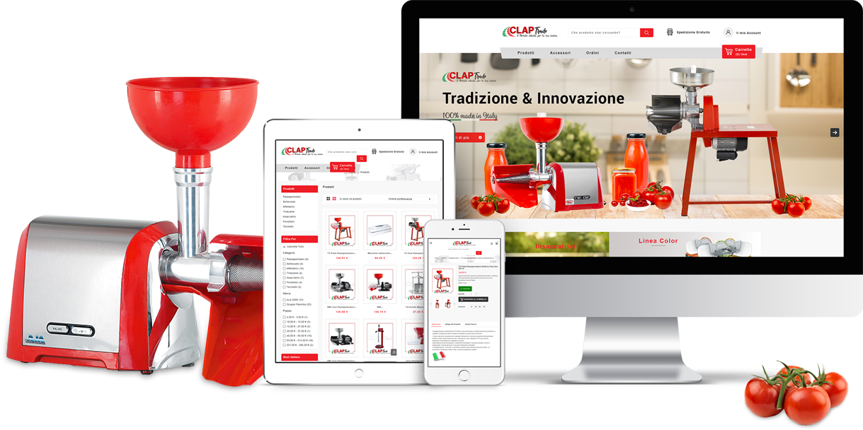 claptrade.it è un portale online specializzato nella vendita di prodotti utilizzati in cucina, sia per il mercato domestico che per quello professionale, ma sempre rigorosamente con realizzazione made in Italy. Queste alcune delle principali categorie commerciali trattate sul sito: passapomodori, sottovuoto, affettatrici, tritacarne, insaccatrici, fornelloni, torchietti.