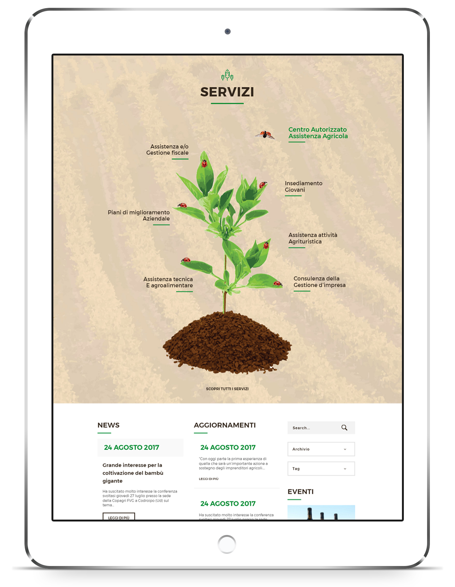 Il settore digitale obbliga a ragionare in una dimensione globale, eppure per la 3d0 rappresenta sempre un vanto poter partecipare a progetti che valorizzano il nostro territorio: in quest’ottica nasce il sito copagricampania.it, un portale di informazione dedicato interamente alla Confederazione Produttori Agricoli, ai suoi servizi e ai suoi aggiornamenti, gestiti dal nostro team di sviluppatori come news multimediali, complete di contenuti grafico-testuali e video.