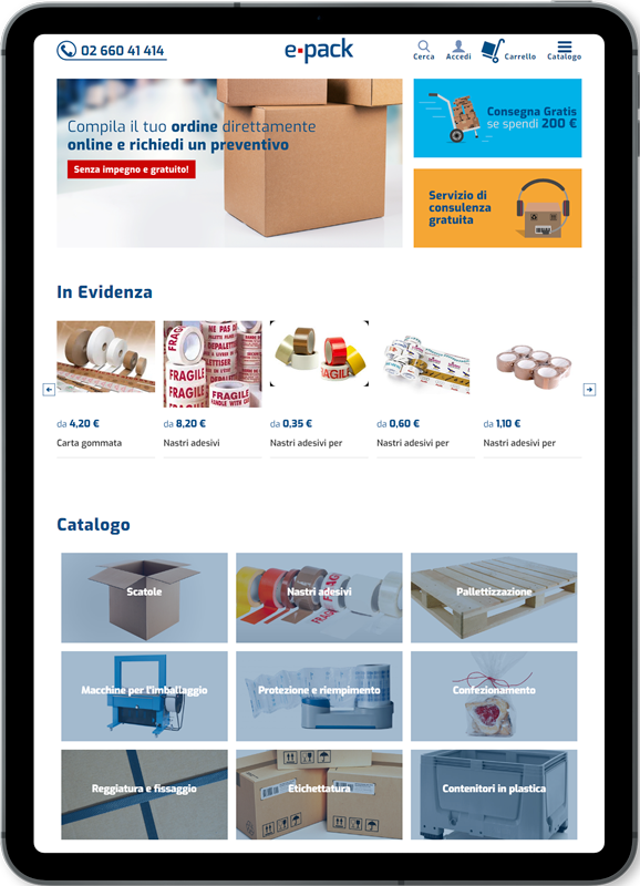Sia dal punto di vista grafico che funzionale creare un modello tabellare di compilazione d’ordine online, esigenza specifica ed imprescindibile esposta dal committente E-pack, ha rappresentato per la 3d0 una vera sfida, portata a compimento nel rispetto delle regole sacre della UX e con un ottimo risultato finale anche in termini di design.