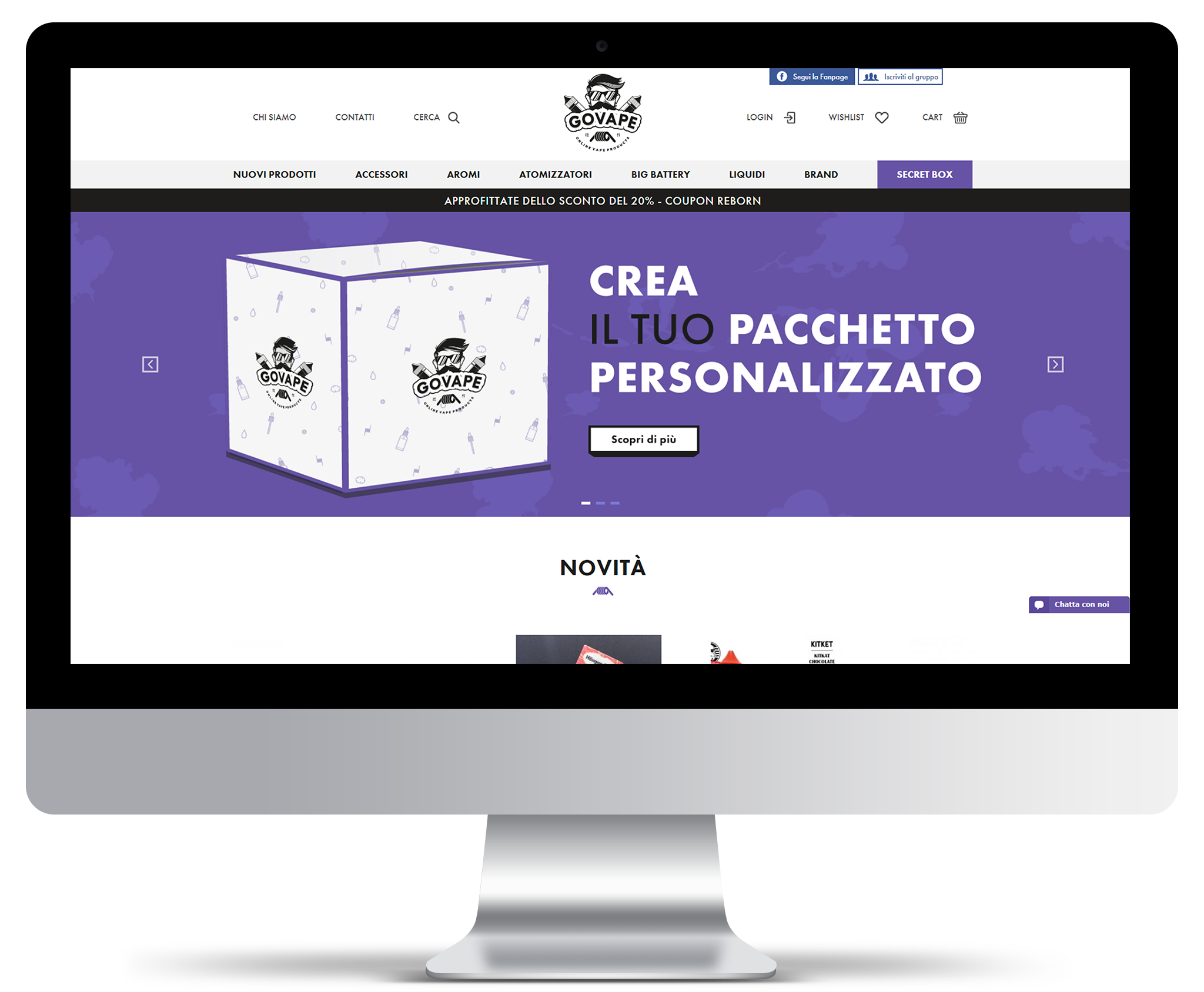 La piattaforma e-commerce govape.it si posiziona nell’universo digitale come un esempio perfetto dell’efficacia grafica di un layout che sposa l’efficienza funzionale di un sito. L’applicativo realizzato dalla 3d0 offre infatti agli utenti un’esperienza di navigazione piacevole e mirata a creare fidelizzazione, soprattutto con la compilazione di una secret box pensata ad hoc per i clienti più curiosi; ma allo stesso tempo garantisce all’amministratore una capacità di gestione del catalogo e dei listini b2b e b2c altamente performante.