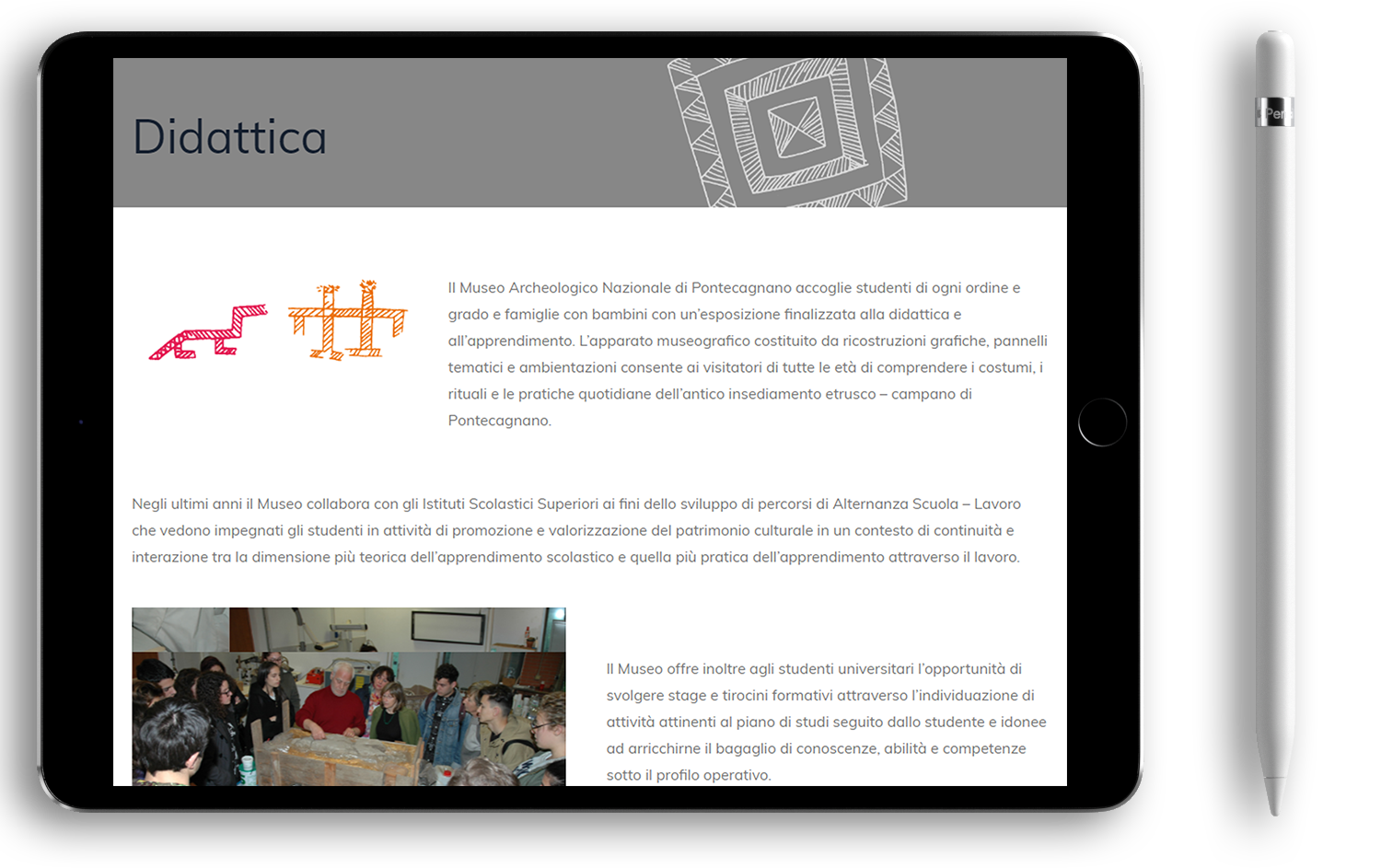 Prosegue con rinnovato interesse il supporto della 3d0 al settore dei Beni Culturali, attraverso un processo di educazione digitale che nel caso specifico ha coinvolto lo staff del MAP, prezioso, sia in fase di briefing che di sviluppo, nel fornire le informazioni necessarie per condurre in porto il progetto web di un portale di presentazione del Museo e di promozione di attività ed eventi organizzati al suo interno.