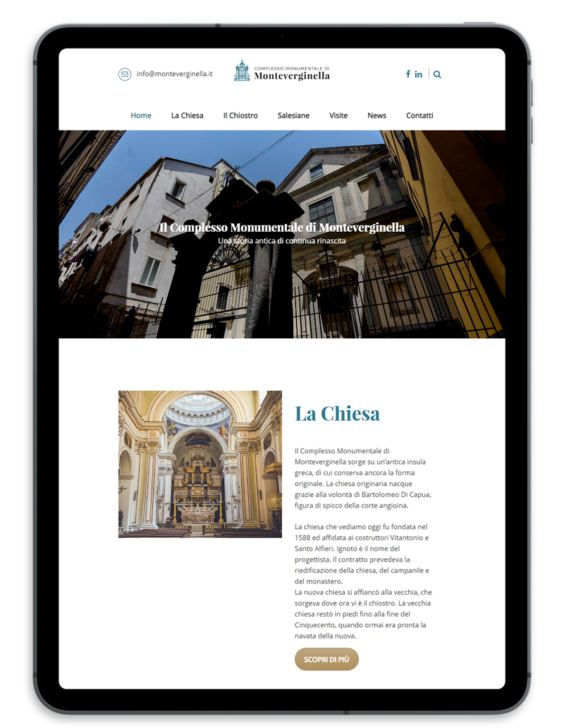 Il Complesso Monumentale di Monteverginella racconta una vicenda antica di continua rinascita ed ha saputo affacciarsi alla modernità conservando intatto il fascino e la maestosità di secoli di storia. Con questo spirito 3d0 ha quindi sviluppato il portale monteverginella.it che ne accompagnerà la narrazione futura anche sul web.