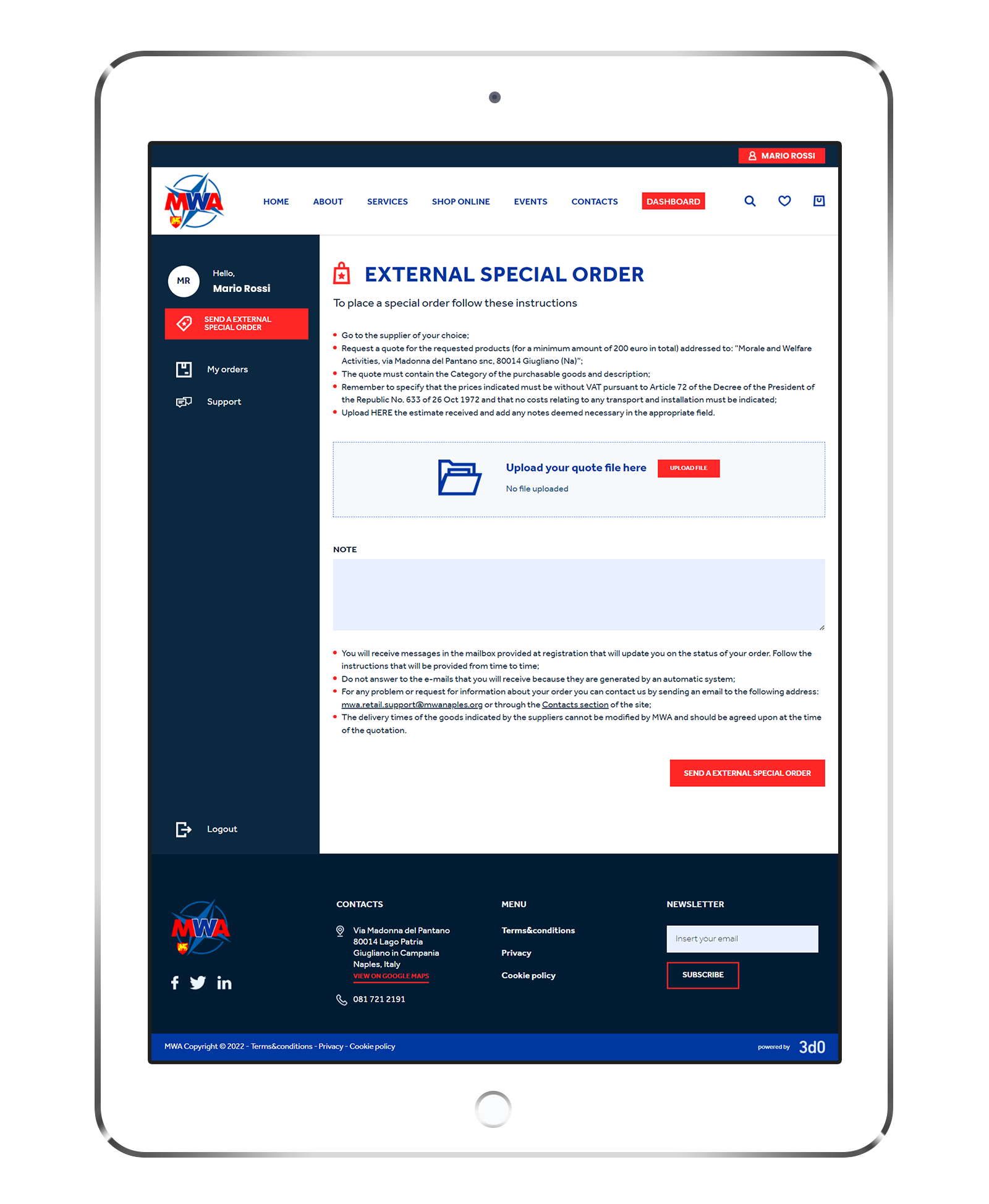mwanaples.org è la piattaforma welfare riservata alla comunità NATO di Napoli. Interamente sviluppata con Marion, il CMS proprietario progettato dall’area sviluppo della 3d0, fornisce agli utenti registrati numerosi servizi dedicati raggiungibili da una dashboard personale, e che vanno ad aggiungersi alle ampie sezioni di carattere informativo completamente aperte al pubblico del web.