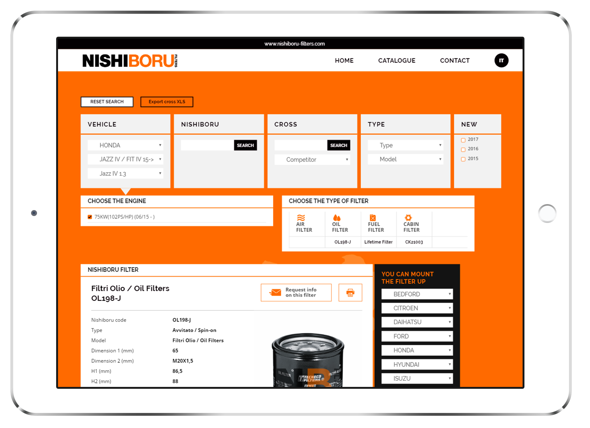 NISHIBORU-FILTERS è un’azienda che opera nel mercato asiatico dei filtri, producendo e distribuendo articoli appositamente progettati e sviluppati per garantire le migliori performance di filtrazione. Il programma filtrazione NISHIBORU comprende filtri aria, filtri olio, filtri carburante e filtri abitacolo, prodotti in stretta conformità OE e nel rispetto dei requisiti CE461/10.