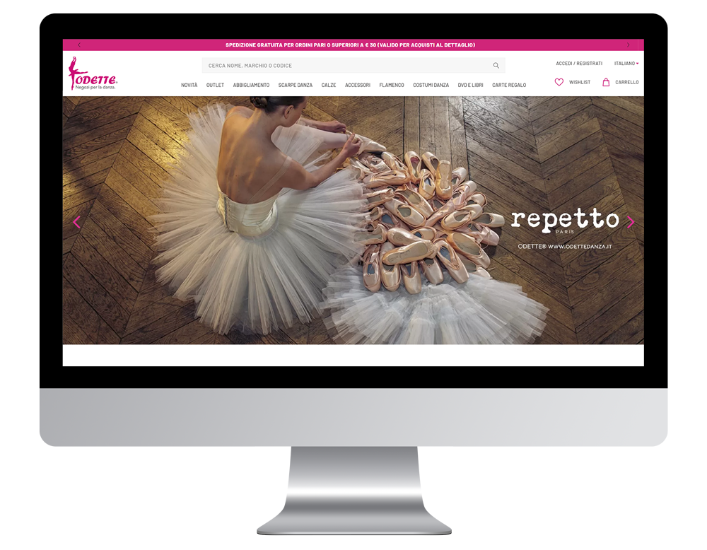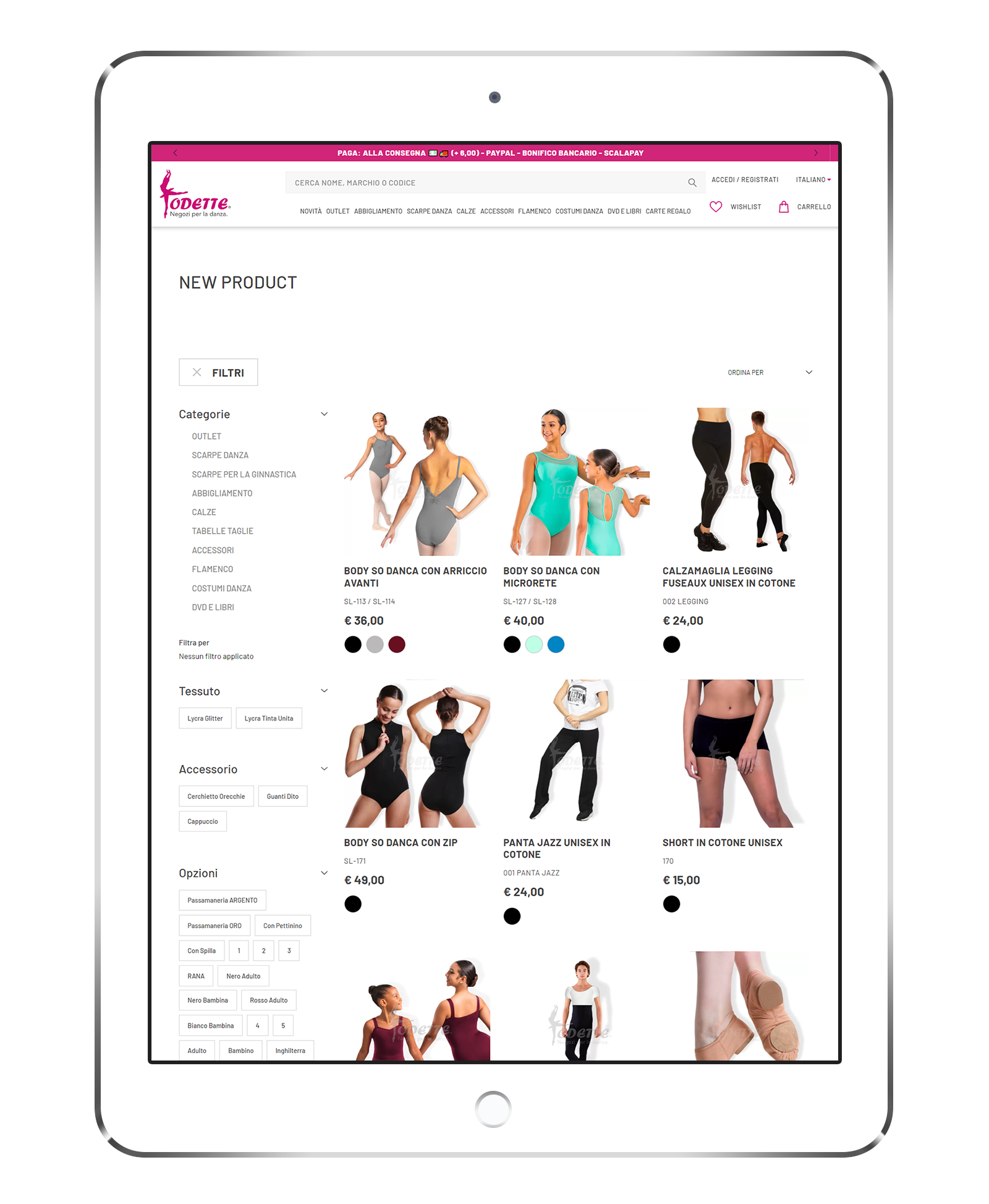 In meno di cinque anni siamo già al secondo restyling per l’e-commerce odettedanza.it, testimonianza di un rapporto con la committenza consolidato e mirato al costante aggiornamento digitale della piattaforma, sia in termini di layout grafico che di implementazioni funzionali, al fine di rendere l’esperienza di navigazione degli utenti sempre più piacevole e immediata.
