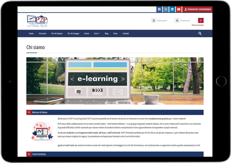 P2P E-Learning Italia è la prima piattaforma di lezioni ed esercizi on-demand e incontri live completamente gratuita per gli studenti.