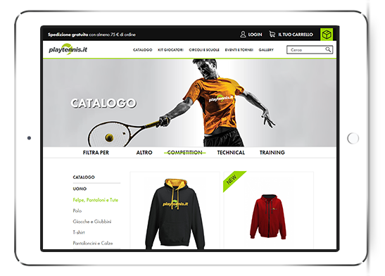 Nuovo layout grafico, nuovi servizi offerti, rinnovato entusiasmo della 3d0 nel seguire il progetto Playtennis per assecondare e valorizzare l’entusiasmo imprenditoriale dei suoi fondatori. Un restyling fullscreen pensato per esaltare la potenza delle immagini e avvicinare sempre più un pubblico di sportivi agonisti o semplici appassionati, al mondo del tennis, attraverso offerte e personalizzazioni per capi di abbigliamento dedicati, sempre comodamente acquistabili online.