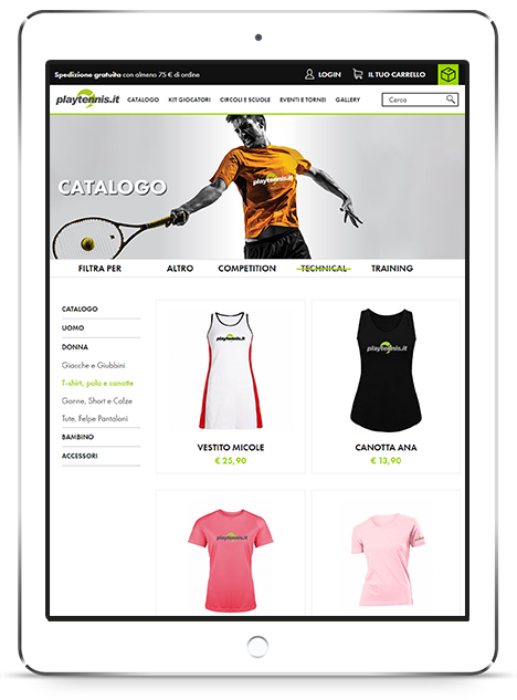 3d0 realizza per Playtennis un portale e-commerce pratico ed intuitivo, totalmente focalizzato sulla domanda d’acquisto del cliente finale, agonista professionista o semplice appassionato di tennis. Frequenti sconti, promozioni vantaggiose, nuovi prodotti caricati periodicamente ed un’area utente da cui poter gestire sempre con semplicità il proprio carrello: ecco come veicolare la propria passione per uno sport anche attraverso il web.