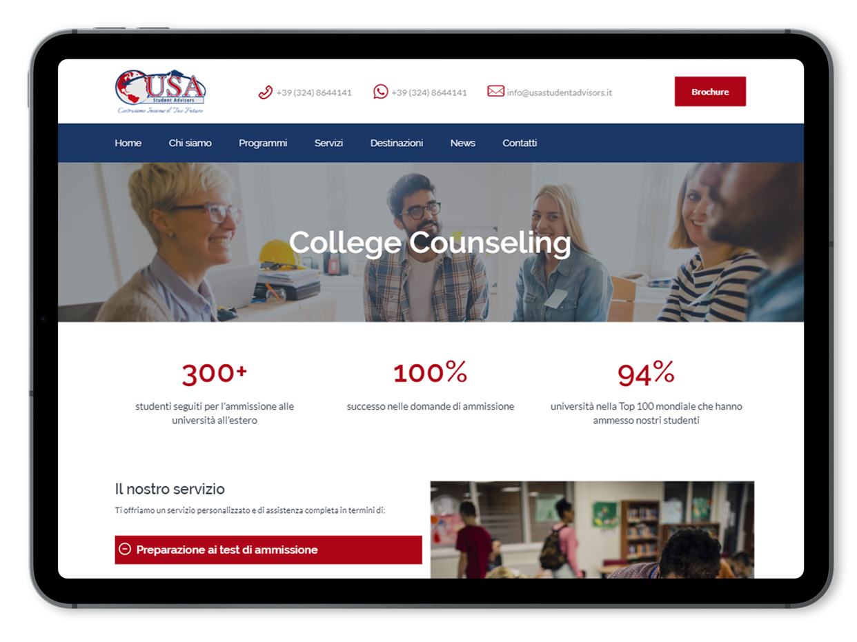 USA Student Advisors si occupa della preparazione di domande di ammissione ai programmi di laurea, master, MBA e dottorato all’estero. Con sedi a New York e a Londra e consulenti in Europa, Stati Uniti, Canada e America Centrale supporta studenti provenienti da tutto il mondo nelle decisioni più importanti della loro vita, partendo dai semplici corsi di lingua e le vacanze studio fino ad arrivare al career planning, la review del tuo CV e la preparazione ai colloqui lavorativi presso le aziende.