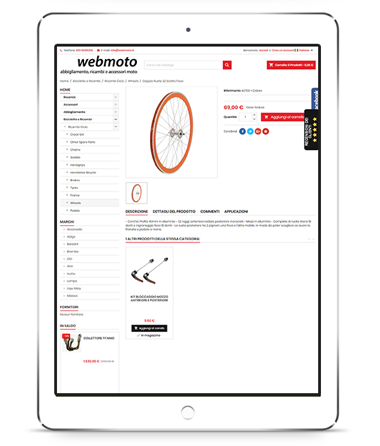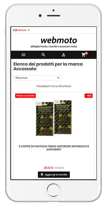Webmoto.it è un portale e-commerce dedicato alla vendita di articoli di abbigliamento, ricambi e accessori moto, dove acquistare in sicurezza prodotti di marca e di qualità, offerti sempre ai migliori prezzi presenti sul mercato, grazie ad una mirata e costante politica di sconti e promozioni.